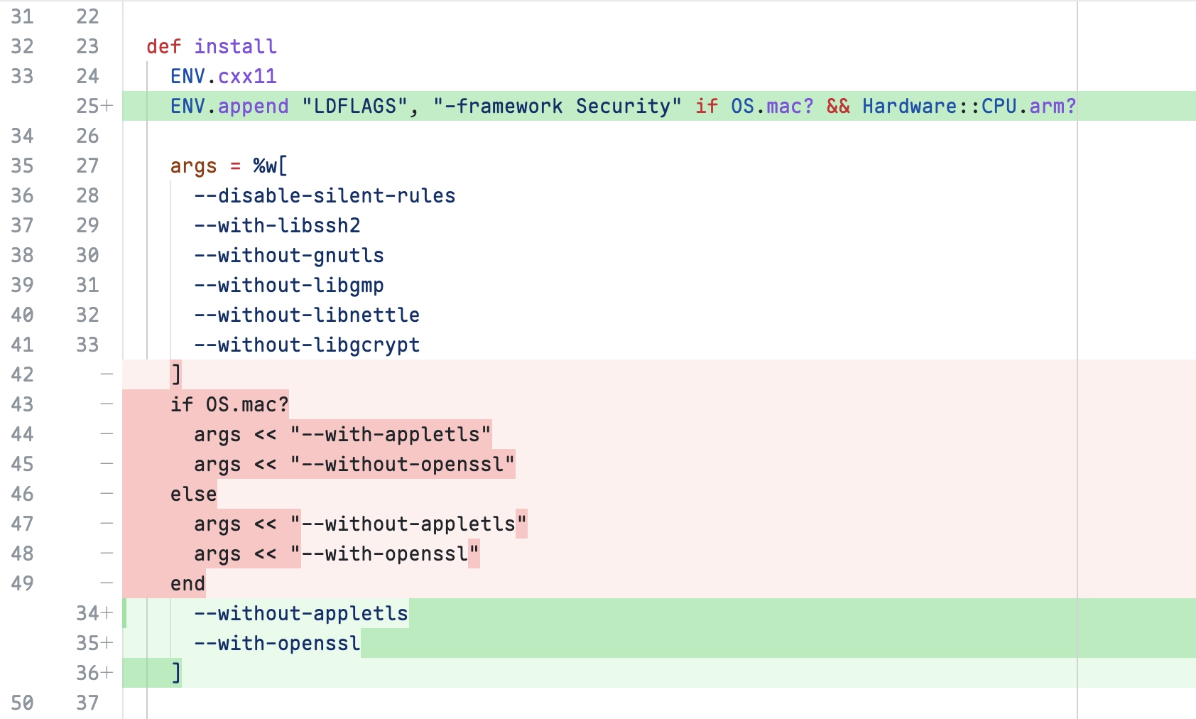 ENV.append "LDFLAGS", "-framework Security" if OS.mac? && Hardware::CPU.arm?