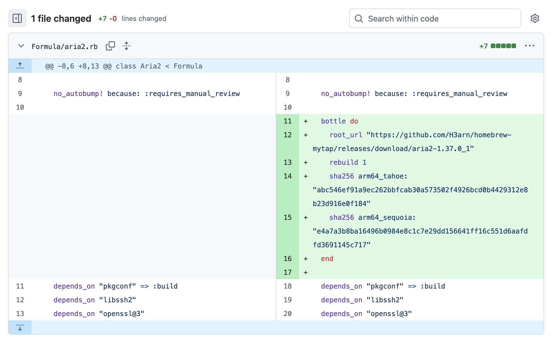+ # 1. Identify the commit created by brew pr-pull